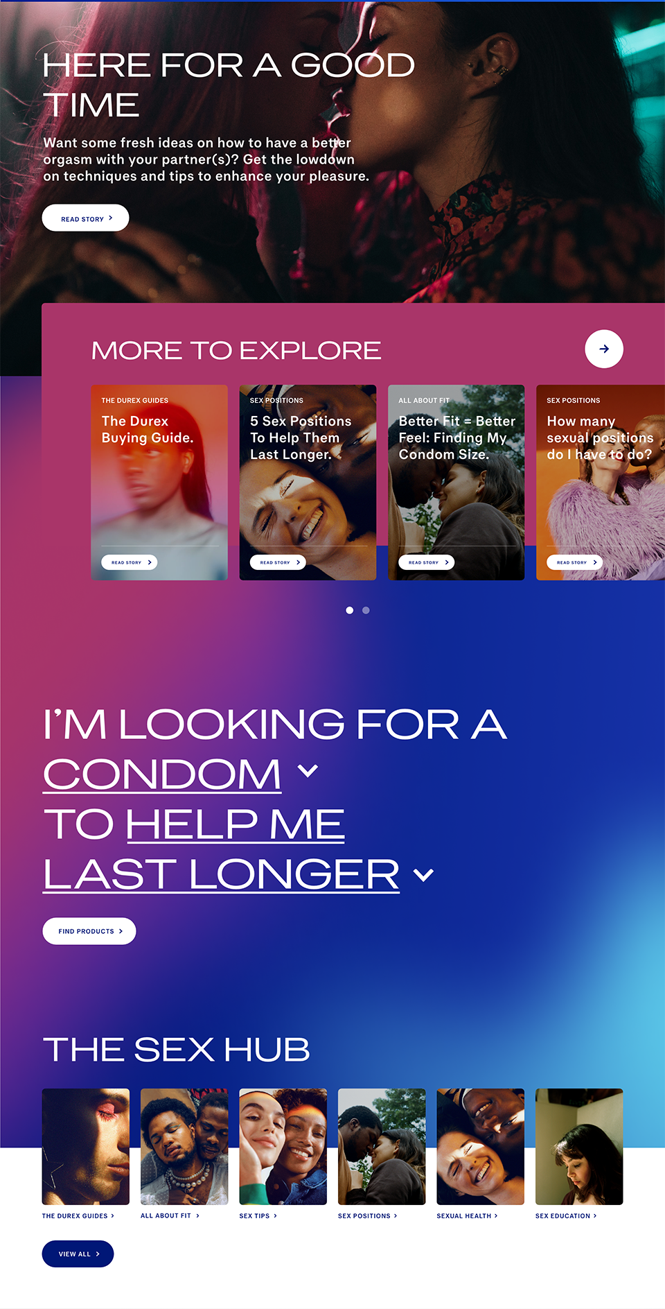 I played a key role in driving the close alignment between the web team and the brand creative team to ensure a consistent and coherent digital expression of the new Durex identity. Leading the UX team, I positioned us at the center of this collaboration, acting as the critical bridge during consultations and workshops to translate bold creative concepts into practical, user-centered solutions. Through my direction, we were able to harmonize brand vision with technical feasibility, ensuring every decision supported both creative intent and functionality. I made sure the team’s input was present at every stage, protecting brand integrity while optimizing the user experience. This leadership approach was fundamental in delivering a successful, unified digital presence for Durex.